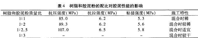 2.3樹脂和膠泥粉的配比對膠泥性能的影響