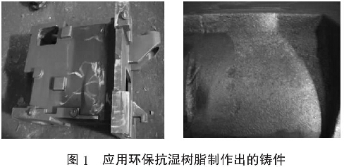 由于特殊原材料和改性助劑的選用,樹脂具有優(yōu)良的韌性和一定的熱塑性,所生產(chǎn)鑄件具有表面質(zhì)量高的特點(diǎn)。通過抗?jié)穹椒ǜ男院蟮臉渲?jīng)南方低溫高溫度條件下試用,滿足高濕度下鑄造要求。